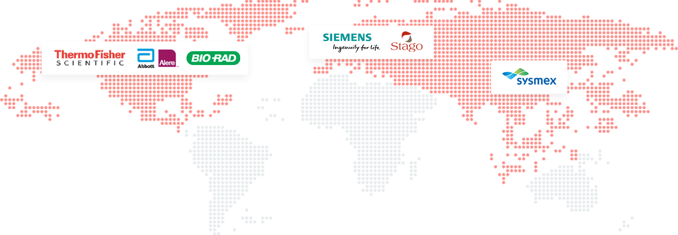 Authorized distributor of globally renowned brands including Sysmex, Abbott, Thermo Fisher, Bio-Rad, Siemens and Stago